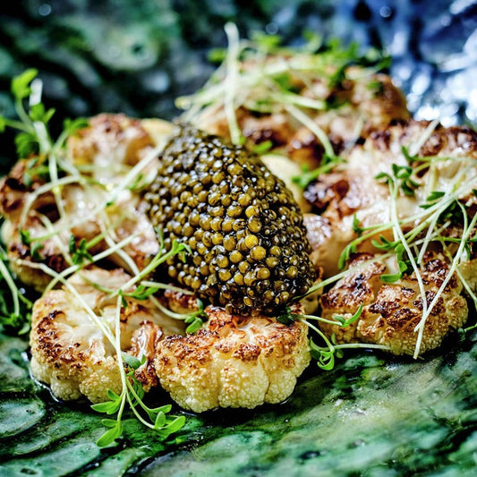 低温殺菌処理や冷凍を施さず、キャビアそのもののデリケートな食感を楽しめるプルニエのフレッシュキャビア。工場から直接、冷蔵で空輸されています。添加物は一切使用せず、加工は塩のみ。